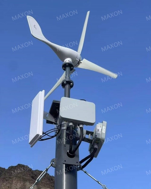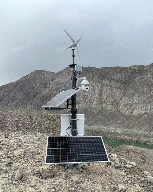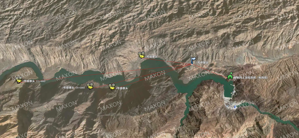 如圖1,4個監(jiān)控點位分布在河谷兩側(cè),中繼基站位置為原運營商基站位置,為當(dāng)前區(qū)域內(nèi)的制點,距離最遠(yuǎn)監(jiān)控點,距離大概5公里,靠外的兩個點位夾角25°。中繼基站距離柳樹溝觀測站距離約1km左右。監(jiān)控前端采用風(fēng)光供電方案,點位選擇時,兼顧日照條件良好。